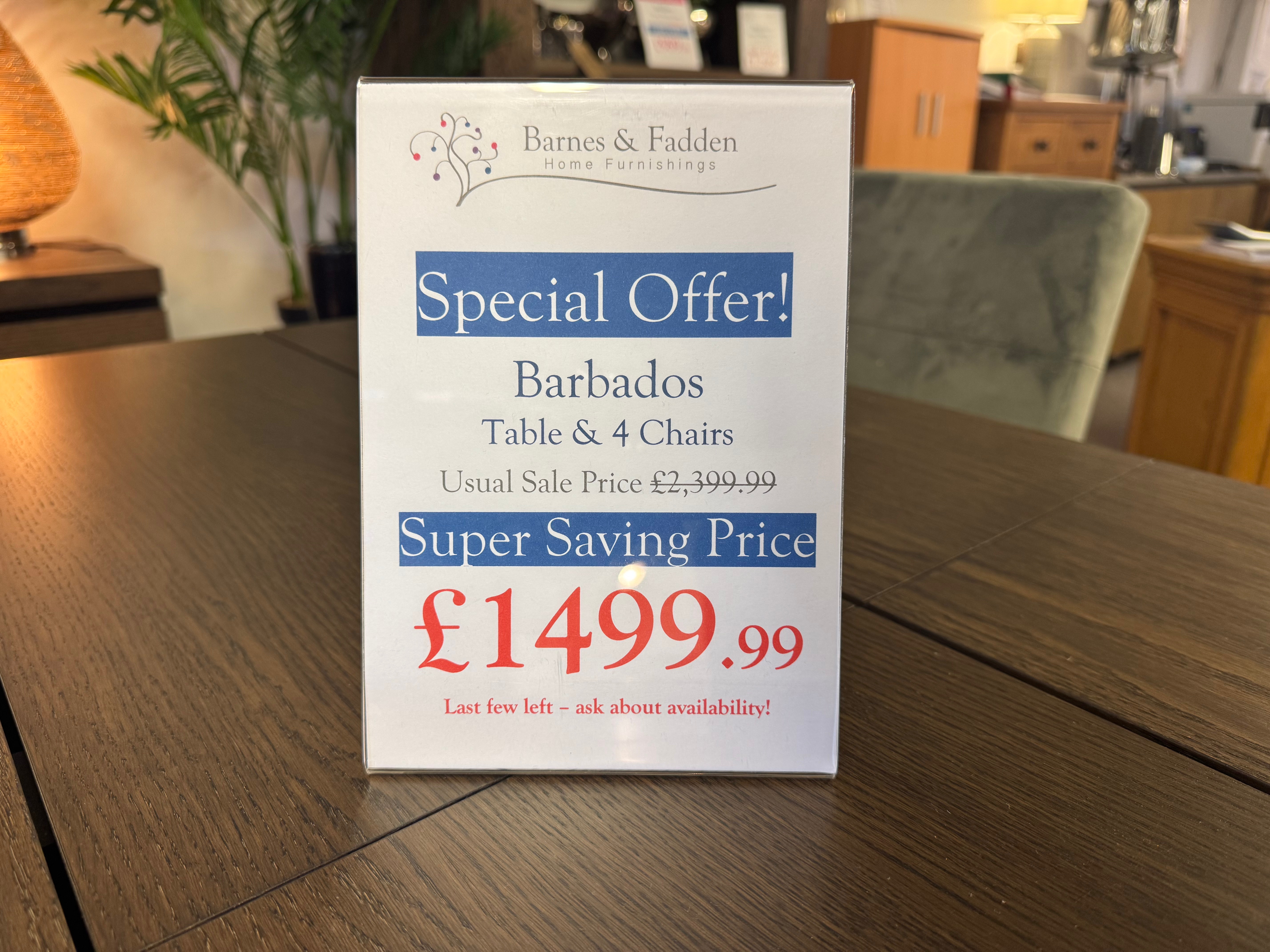 Barbados 1.5m Dining table + 4 Chairs