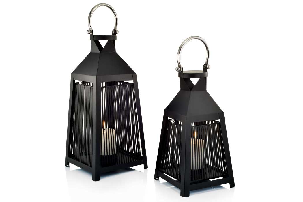 Crafted from mild steel, the lanterns feature a sleek and sophisticated matt black powder coating. The polished stainless steel trim and handle add a touch of refinement, ensuring this lantern stands out as both a decorative piece and a functional lighting element.