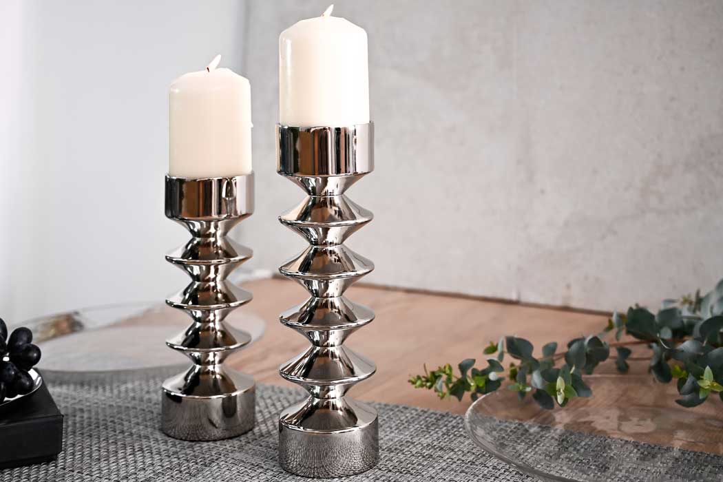 With a black interior and nickel plated aluminium outer finish, the beauty of objects placed around these holders will also be enhanced by their reflection.