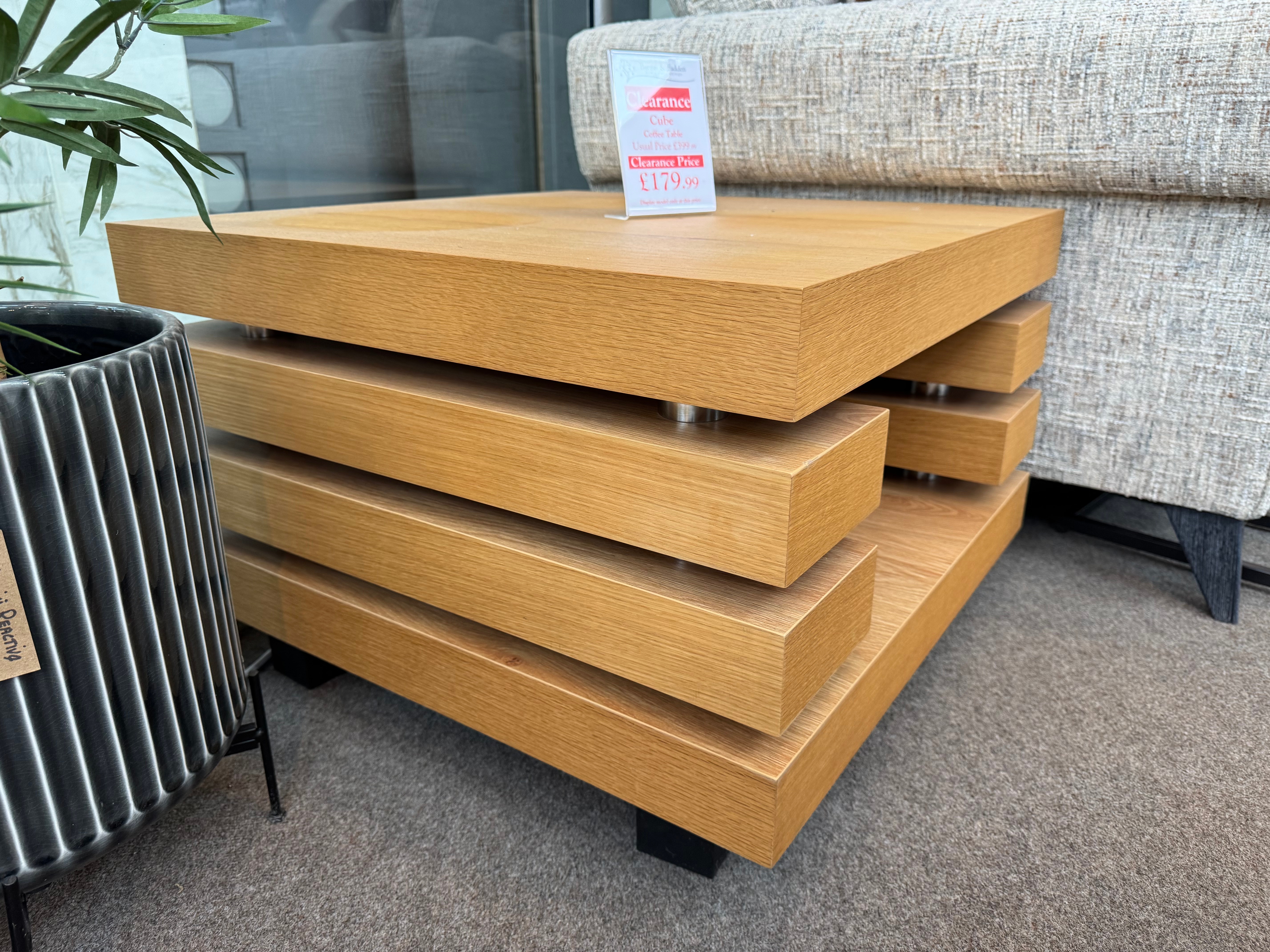 Modern Cube Coffee Table – A bold, minimalist centrepiece with rich wood tones and clean lines. Perfect for contemporary interiors. ts compact yet impactful shape allows it to serve as a central focal point, a display base for décor, or a practical surface for daily use.