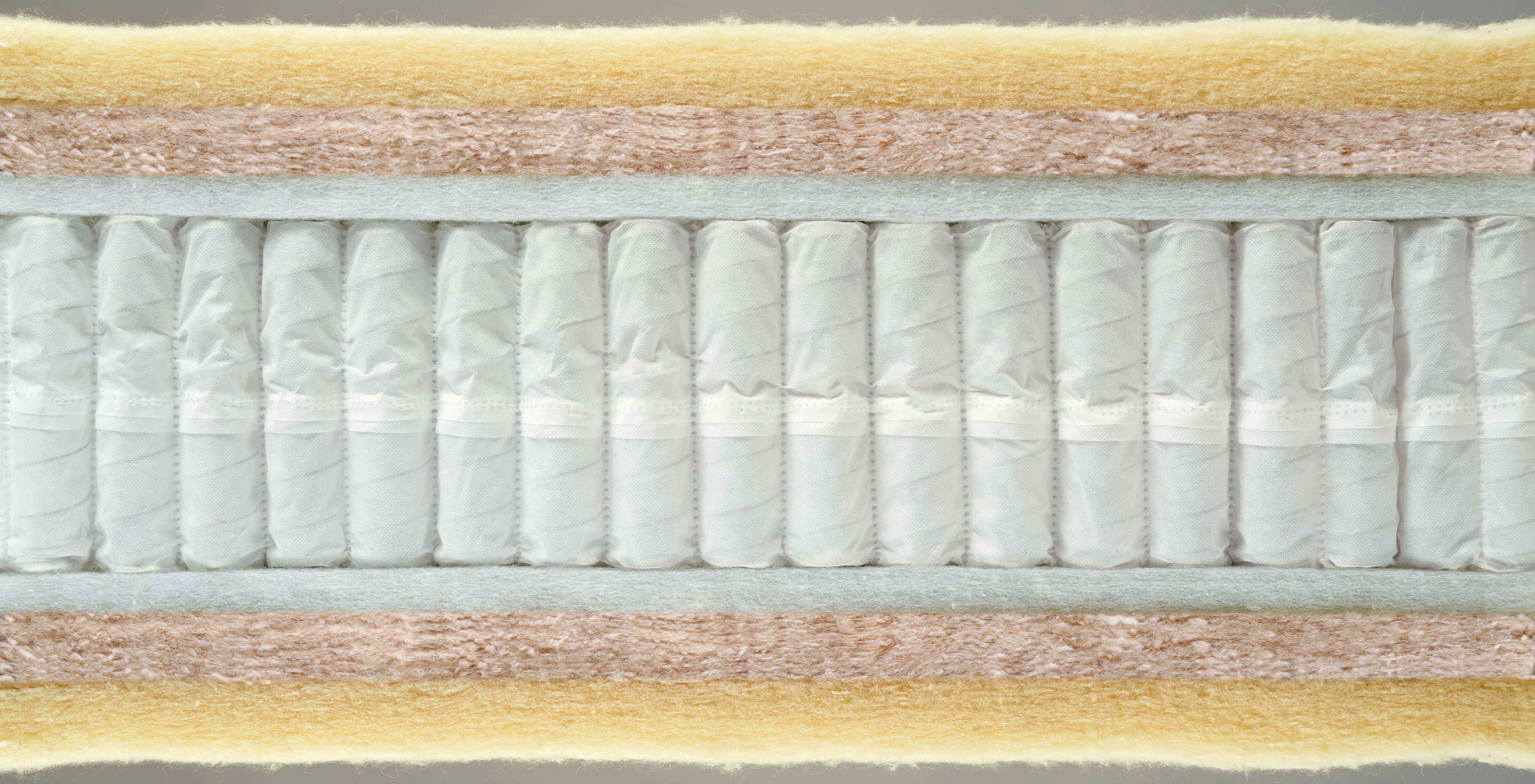 7-Turn ReActivePro™ Springs with Triple Edge Protection™ Layers of Himalayan Allo, Kapok and recycled eOlus™ fibres 100% British wool certified to the Responsible Wool Standard Three rows of genuine hand side-stitching Double sided mattress – turn and rotate with the seasons Available in ‘medium’ and ‘firmer’ comfort levels (spring tensions) Belgian damask Viscose sleep surface…