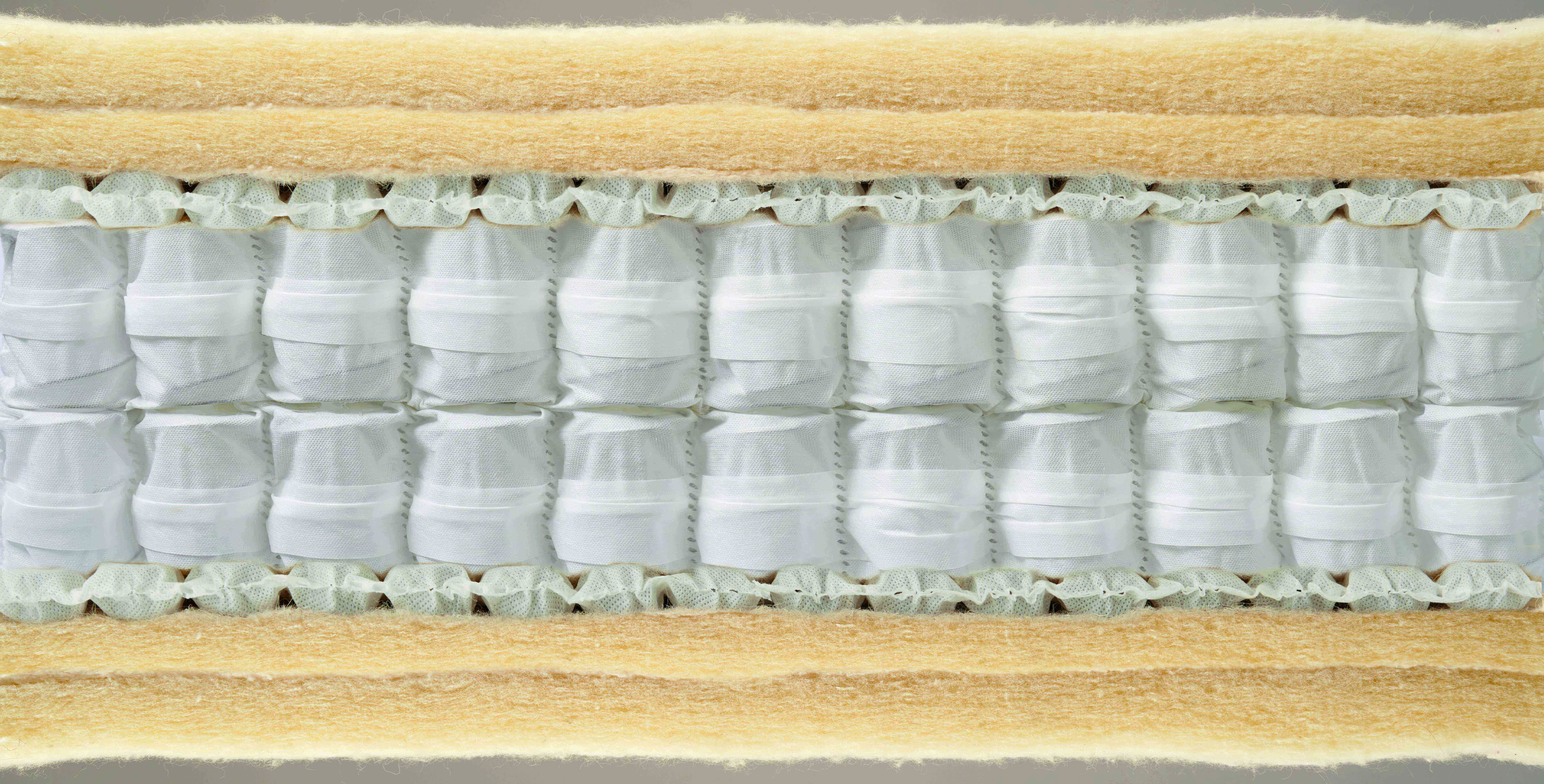 ReActivePro™ DUO pocket springs consist of a double layer of pocket springs designed to meet Hypnos’ softer comfort requirements, with perimeter frames and 3 rows of firmer tension springs at the edge for support. Each spring is at least 5 turns, so combined are over 10 turns and are lighter-weight springs. Each spring layer engages separately, depending on weight and size, providing a graduated feel and cushioned support.