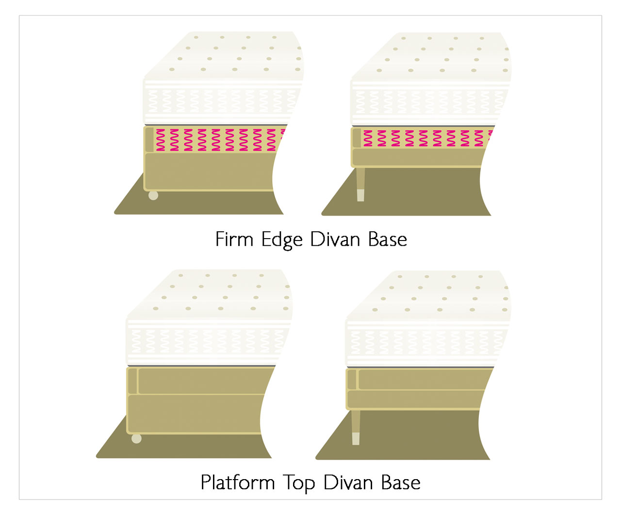 We recommend this mattress is matched with a firm edge, sprung divan base to provide a supremely luxurious feel.